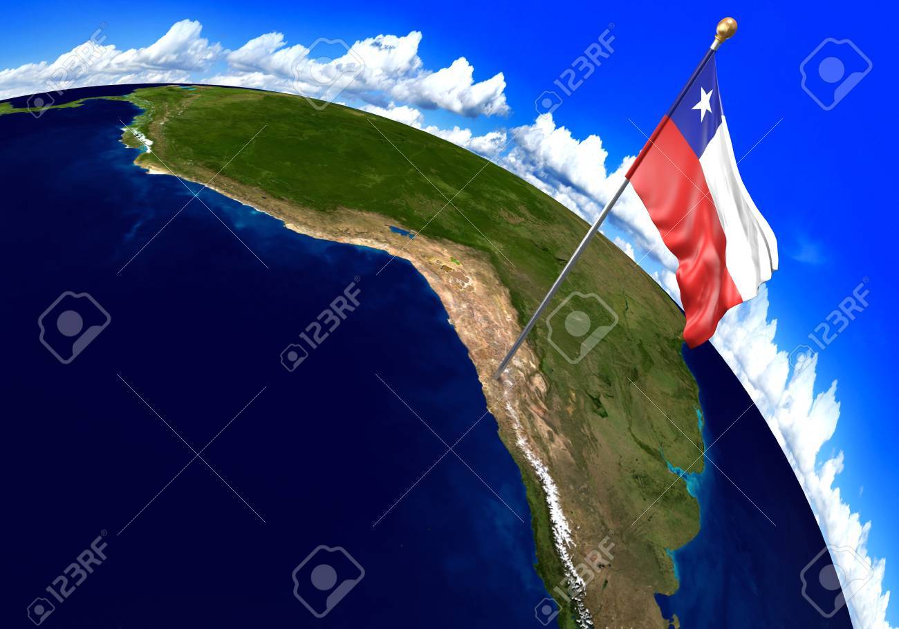 Chile National Flag Marking The Country Location On World Map Stock Photo Picture And Royalty Free Image Image 70376762